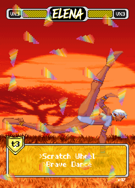 Elena (エレナ Erena?) is a video game character from the Street Fighter series, first appearing in Street Fighter III: New Generation. She is a light hearted, nature-loving capoeira fighter from Kenya who is currently studying abroad. Here she is taking a bow