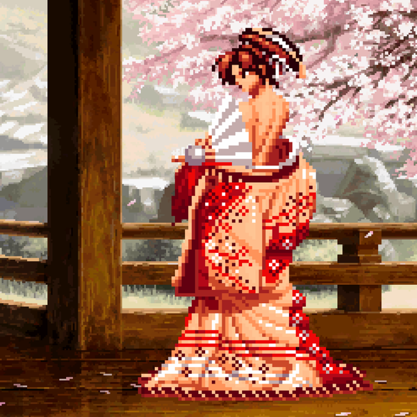 Mai Shiranui is a player character in the Fatal Fury and The King of Fighters series of fighting games by SNK. Here she is waving her fans. Animated by AdamEX