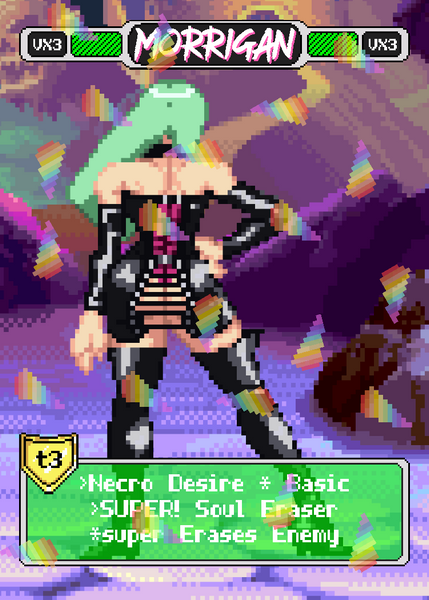 Morrigan Aensland is a fictional character in the video game series Darkstalkers. She first appeared in Darkstalkers: The Night Warriors (Vampire: The Night Warriors in Japan). She is an anti-hero and a main protagonist alongside Demitri Maximoff. In the series main canon, Morrigan's father, Belial Aensland, had split her power into three. Later in the events of Vampire Savior: The Lord of Vampire, Jedah Dohma would find part of this power and give it a body as Lilith. Here she is is tranforming into various cosplays. Animation by AdamEX